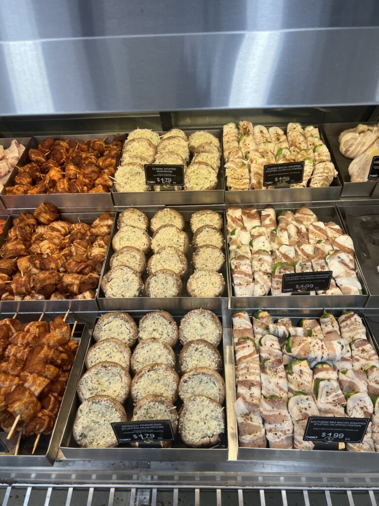Some of our most popular products include: bacon-wrapped jalapeno poppers, stuffed cremini mushrooms, chicken and beef fajita mix, chicken and beef bacon bites, and chicken and beef kabobs.